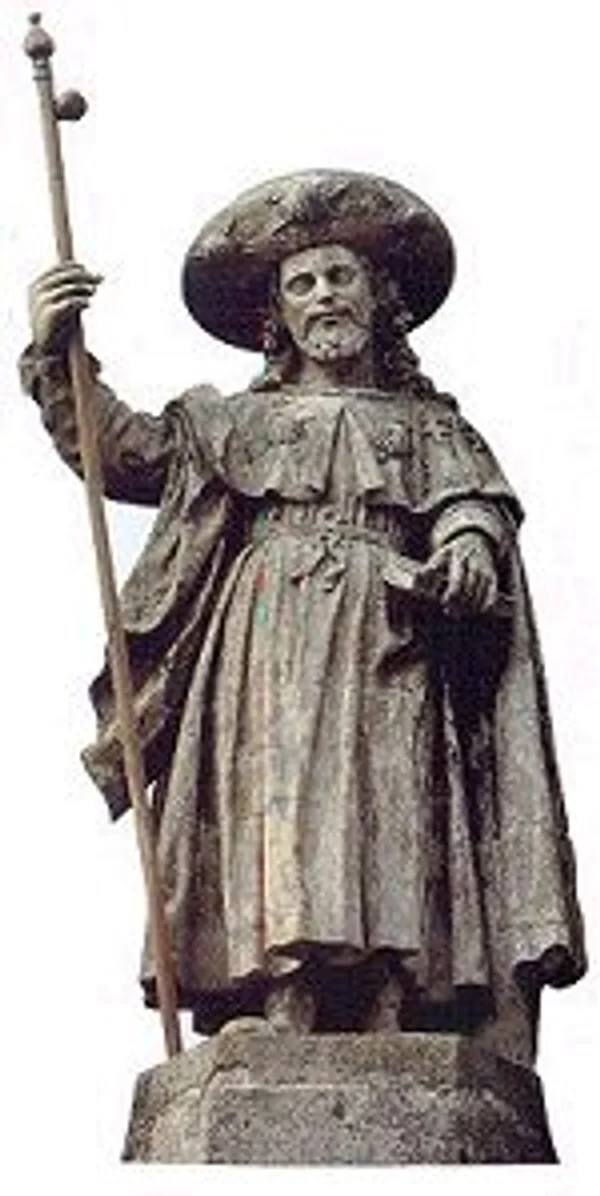 Nesse ínterim, os esoteristas descrevem que Santiago aparece com o Apocalipse em sua mão. Além disso, eles relatam que o apóstolo leva uma vara e exibe uma concha marinha em seu chapéu. Visualmente, os observadores notam que o santo se apoia em seu báculo, o qual eles chamam de vara. Simultaneamente, eles veem que ele empunha o Apocalipse enrolado com a outra mão. Logo depois, eles reparam que uma concha surge no chapéu dele. Curiosamente, os artesãos fizeram o chapéu dele com uma coisa estranha, porque eles utilizaram uma abóbora para a confecção.